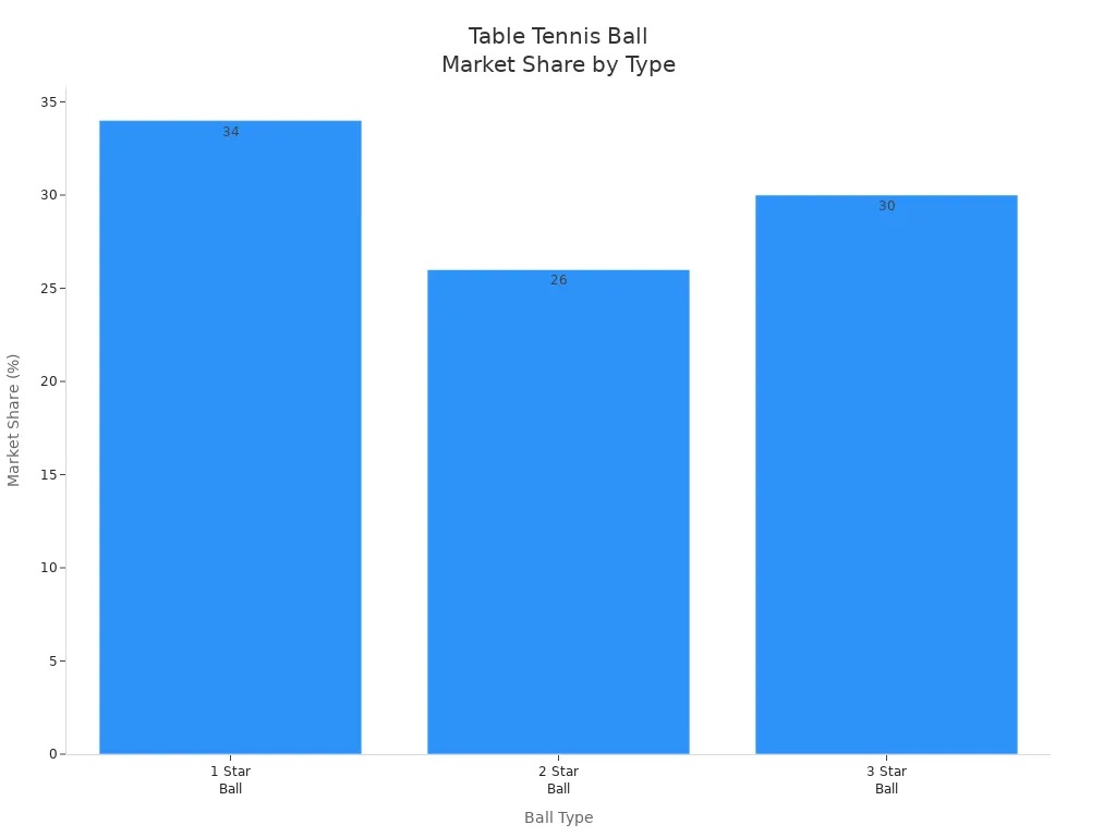 Quieres que tu pelota de tenis de mesa rebote igual cada vez que juegas. Aquí es donde la calidad es fundamental. Las pelotas de una estrella pueden tener pequeños errores. A veces se tambalean o rebotan de forma extraña. Estas pelotas son ideales para juegos divertidos, pero notarás problemas si juegas con más frecuencia. Las pelotas de dos estrellas rebotan mejor y de forma más uniforme. Puedes confiar en ellas cuando practicas. Las pelotas de tres estrellas son las mejores. Siempre son redondas y rebotan igual. Puedes contar con pelotas de ping pong de tres estrellas en cada partido. Siguen reglas estrictas, así que siempre obtendrás el mismo rebote.
